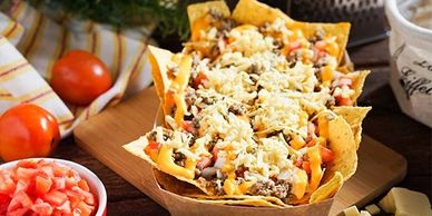 It can be yummy-crunchy or squishy-soggy – it just depends on how long you take to start eating it! Our Beef and Cheesy Nachos are stacked with layers of warm tortilla chips, seasoned ground beef, gooey cheese, and fresh veggies. This snack is guaranteed to brighten anyone's day!
