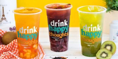 At The Happy Chai House, we believe that every sip should bring a smile. Our tagline, "Drink Happy Thoughts," is more than just words—it’s our philosophy. We’re dedicated to creating moments of joy, one cup at a time. From our signature bubble teas to refreshing iced beverages, creamy soft-serve ice cream, and delicious waffles, every item on our menu is crafted to brighten your day.